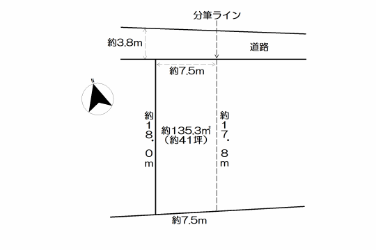 - 幅員:3.8 m/北 側/接道:7.5 m