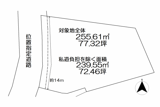 - 幅員:5 m/西 側/接道:14 m