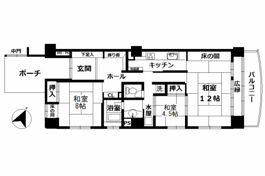 3階2LDKのお部屋のご紹介です。水屋付茶室が配された純和風の室内は、高級旅館を思わせるモダンで寛ぎのあるプライベート空間。専有面積は96.95㎡とゆったりとした広さがあり、収納も充実しています。バルコニーからは手入れの行き届いた日本庭園を望むことができ、美しい自然が日常に癒しを与えてくれます。総戸数わずか24戸という贅沢な造りのハイグレードマンション。喧騒から離れ、上質な落ち着きある日々を過ごしたい方にオススメです。